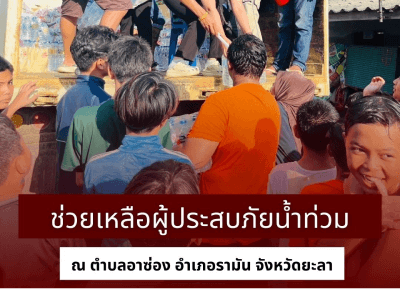 ขอเป็นกำลังใจให้พี่น้องชาวยะลาทุกท่าน เราจะร่วมผ่านวิกฤติน้ำท่วมครั้งนี้ไปด้วยกัน ขอให้ทุกๆคนผ่านวันร้ายๆไปให้ได้